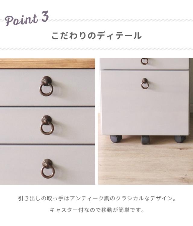デスクワゴン サイドチェスト 3段 木製 引き出し キャスター付き サイドワゴン デスク下ワゴン 収納棚 脇机 おしゃれ 可愛い