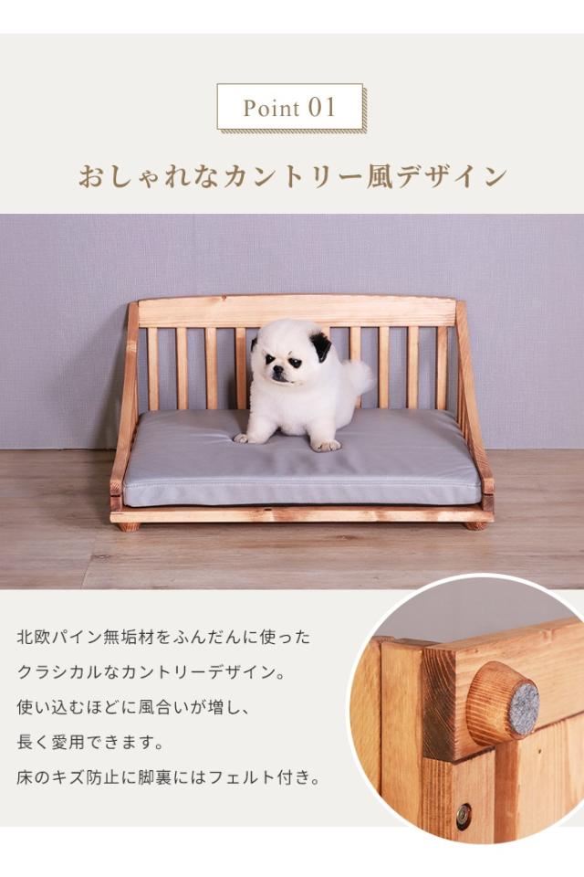 ペットベッド 木製 クッション付き ペット用 犬 猫 Mサイズ 幅67.5cm ペットマット ペット用品 インテリア ナチュラル