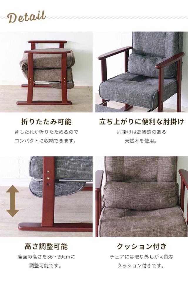 高座椅子 リクライニングチェア 折りたたみ可 1人掛け ソファ イス フットレスト付き 肘掛け ファブリック おしゃれ シンプル