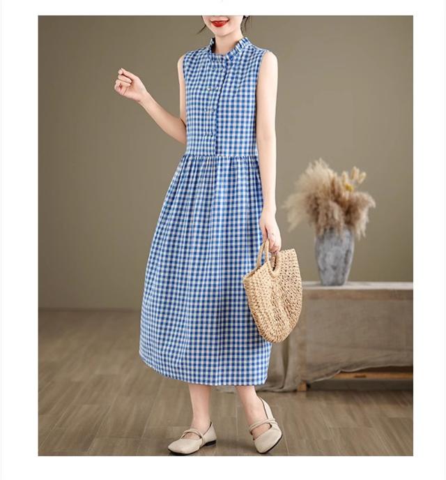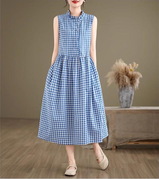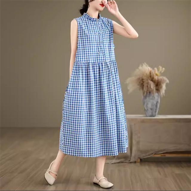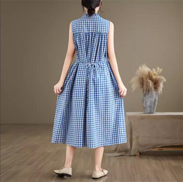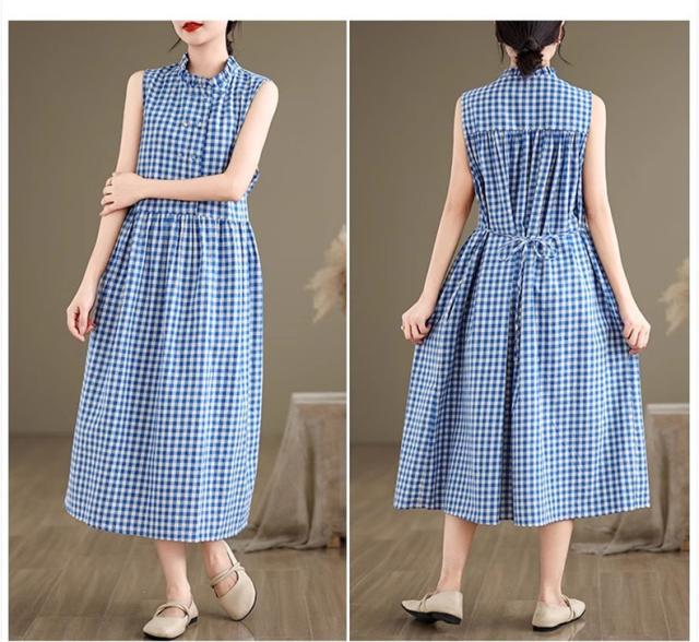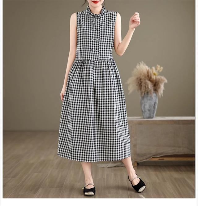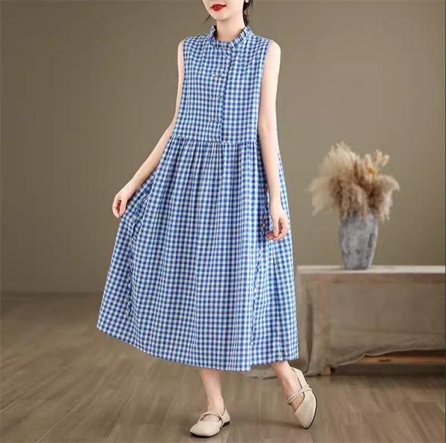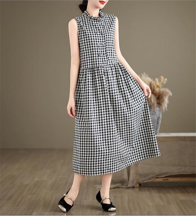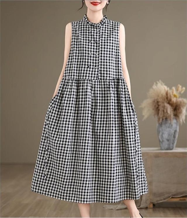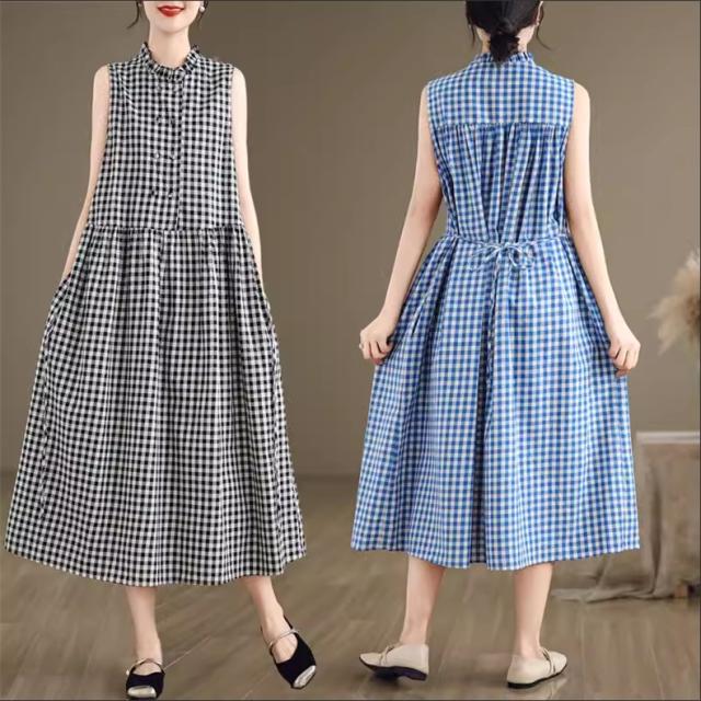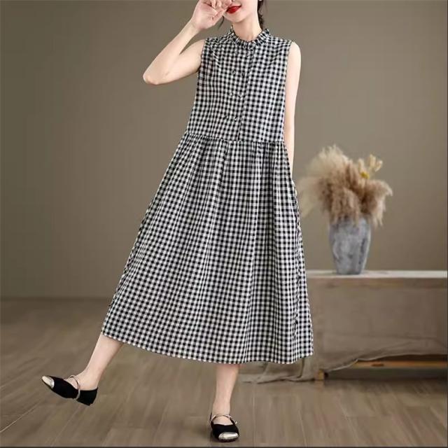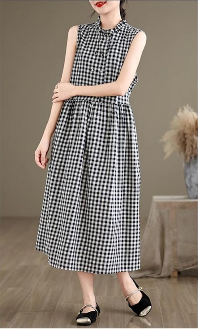 シャツワンピース レディース トップス ロング丈 ノースリーブ チェック柄 ゆるっと絶妙なシルエット 女性らしさたっぷり ストレスフリーな着心地 すっきり
