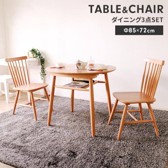 ダイニングテーブルセット 2人掛け 3点セット 円形 丸 ダイニングテーブル チェア 食卓テーブル 椅子2脚 北欧風 ナチュラル