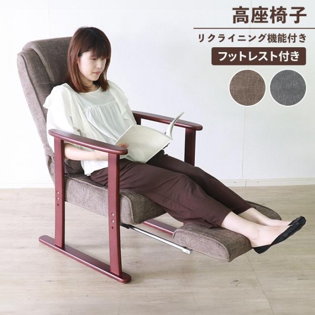 高座椅子 リクライニングチェア 折りたたみ可 1人掛け ソファ イス フットレスト付き 肘掛け ファブリック おしゃれ シンプル