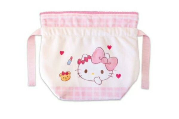 【サンリオキャラクターズ】ふわふわ巾着ポーチ【ピンク】【ハローキティ】【50th】【50周年】【ケース】【小物入れ】【袋】【収納】【きんちゃく】【雑貨】【グッズ】【かわいい】