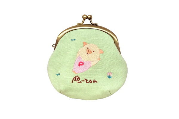 ナイ044708 【送料無料】【ぷーとん】がまぐちポーチ【ペールグリーン】【緑】【ぽけー】【ブタ】【動物】【アニマル】【ケース】【小