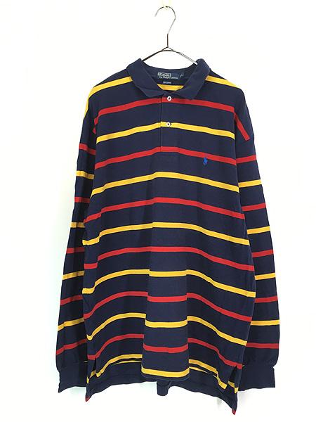 古着 Polo Ralph Lauren カラフル ボーダー カノコ 長袖 ポロシャツ ロンポロ XL 古着
