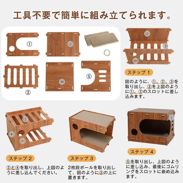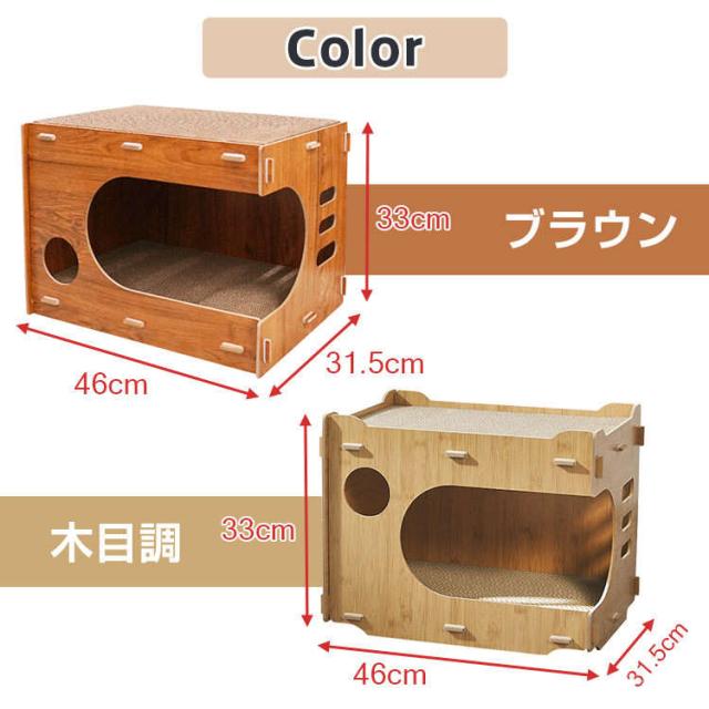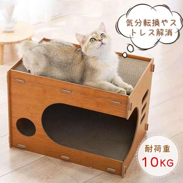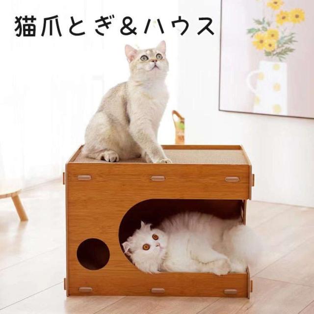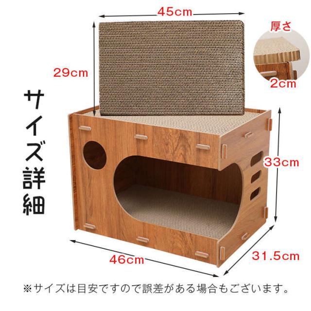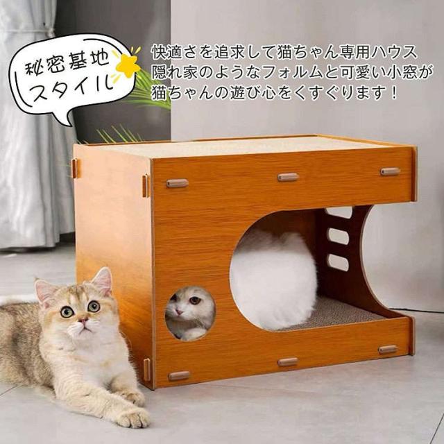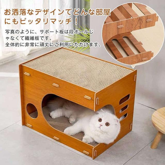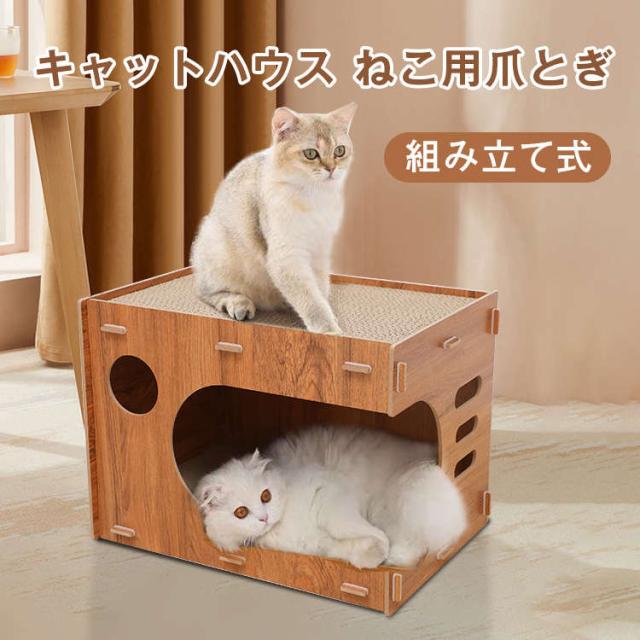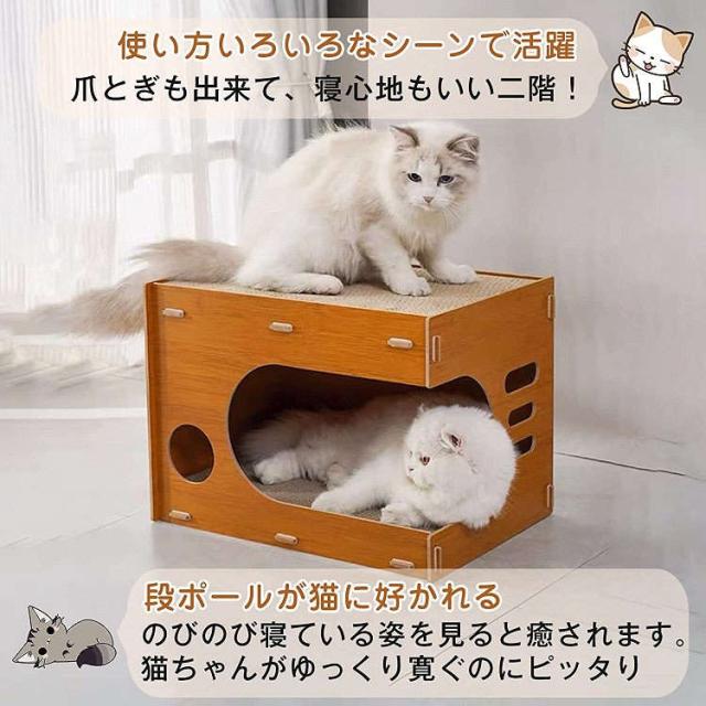 猫 爪とぎ ダンボール ハウス 組み立て式 猫用 爪とぎ 段ボール ストレス解消 収納簡単 組立簡単 木製 二層 高さ33cm