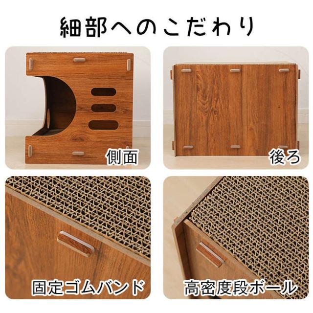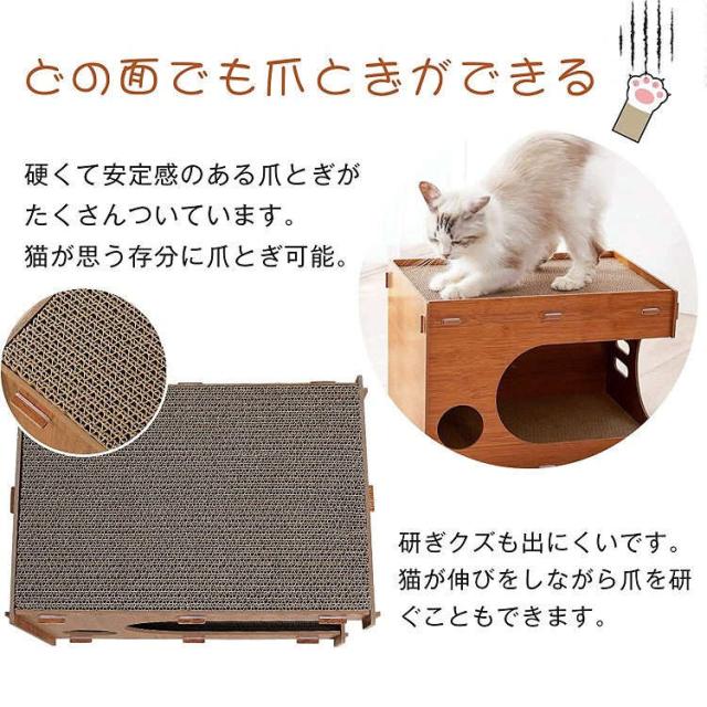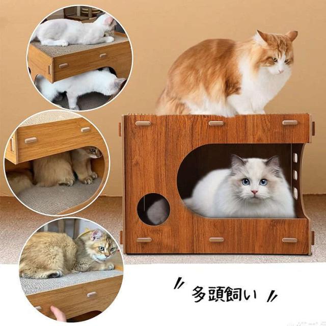 猫 爪とぎ ダンボール ハウス 猫つめとぎハウス キャットハウス 両用 高密度段ボール 猫用 多頭飼う 爪とぎ兼ベッド 段ボール ストレス解消 猫箱 二層 組立簡単 木製 小中型猫 爪研ぎ二枚 両面使え ゴムで固定 ペット用品