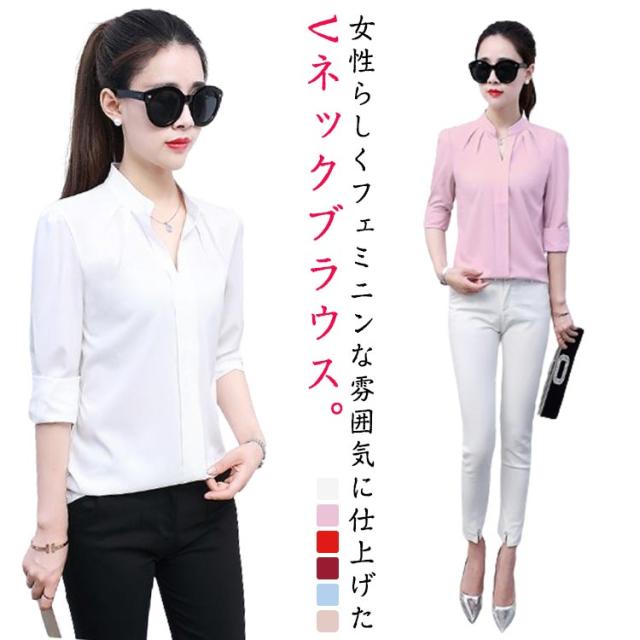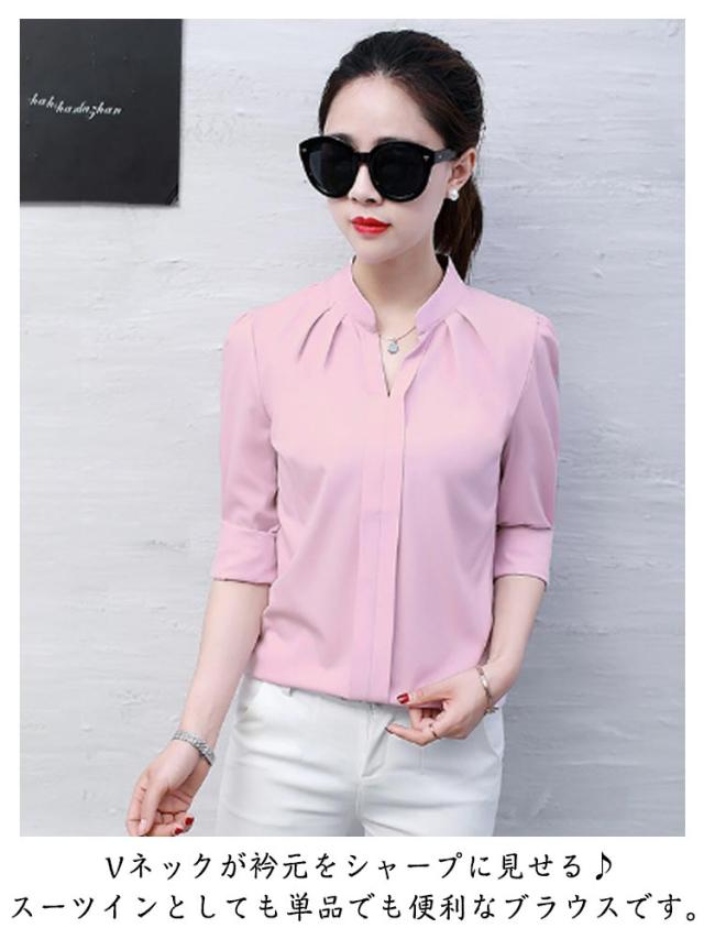 レディース 細身 おしゃれ vネック 長袖 タックブラウス スキッパーシャツ フェミニン スーツ インナー 薄手 シャツ スリム vネック フォーマル オフィスカジュアル シンプル 大人 無地 通勤 春