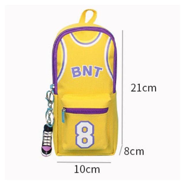 バスケ 縦型 グッズ ふでばこ 男の子 ファスナー ペンケース ペンポーチ キャンバス おもしろ バスケ 筆箱 カラビナ付 ポーチ 小物入れ ファスナー ポケット 持ち手 チャーム おしゃれ バスケットボール
