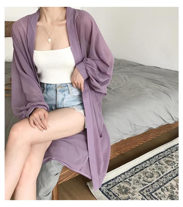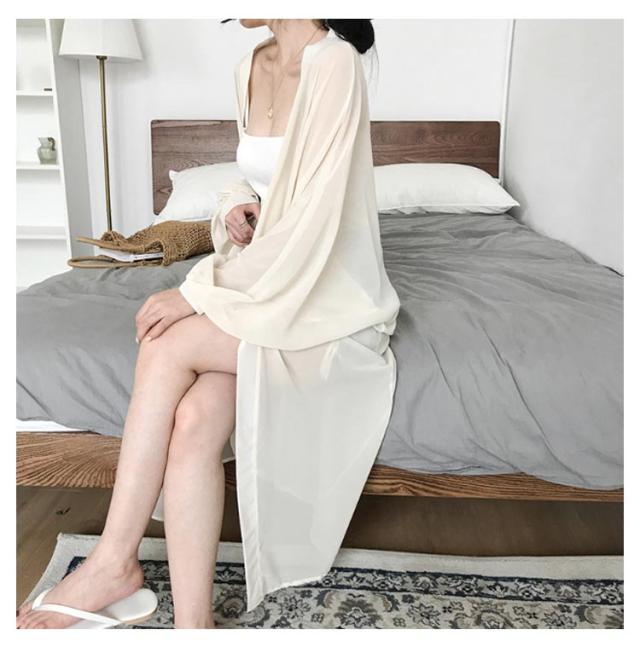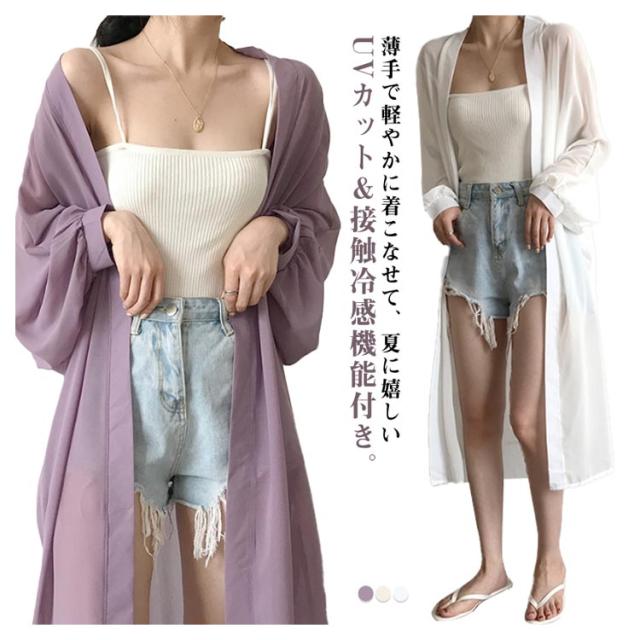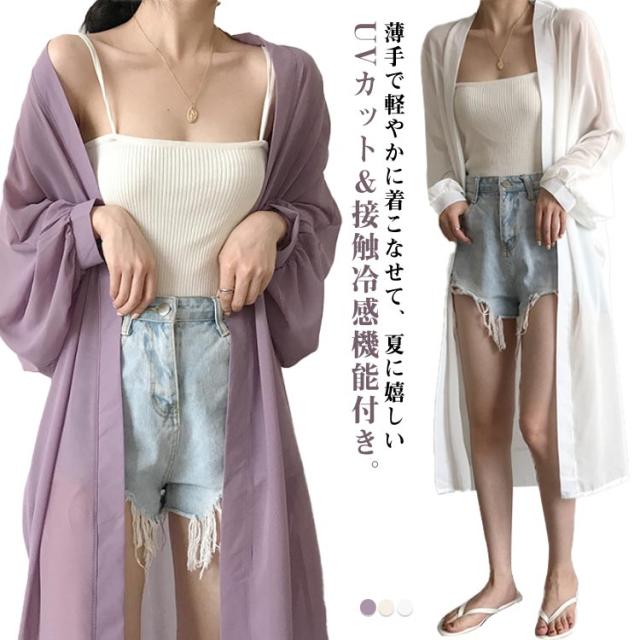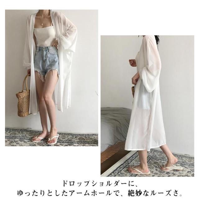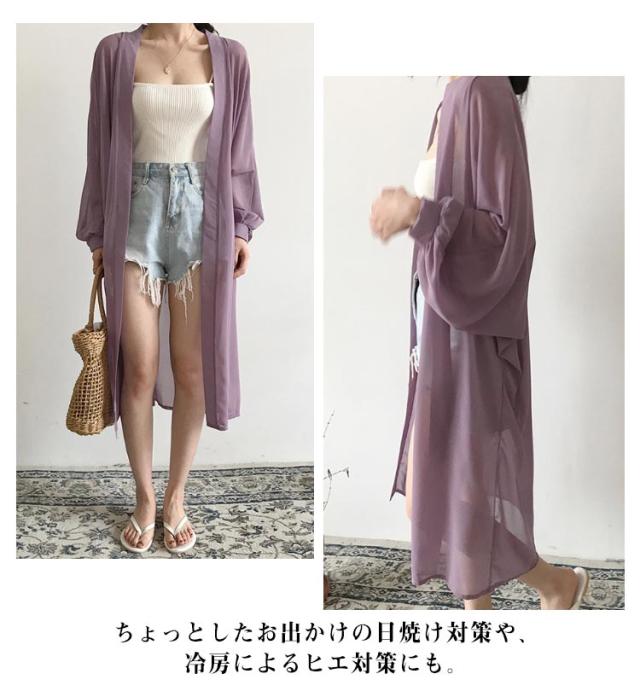 レデイース ロング丈 UVカット カーディガン 春 ロングカーディガン 長袖 シフォン 透け感 羽織り シースルー ニットカーディガン 薄手 シフォン 軽量 紫外線対策 シンプル 冷房対策 UV対策 サマーカーディガン