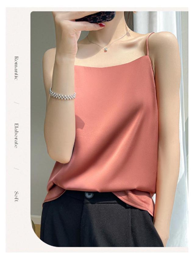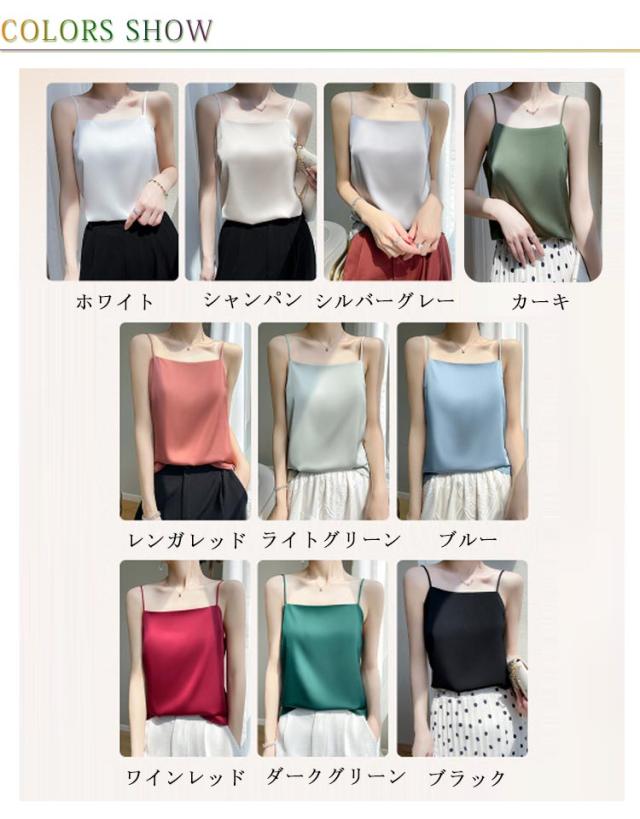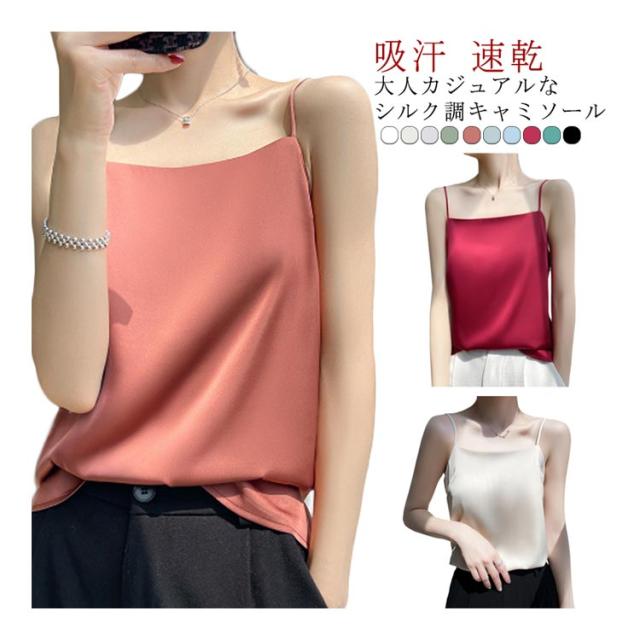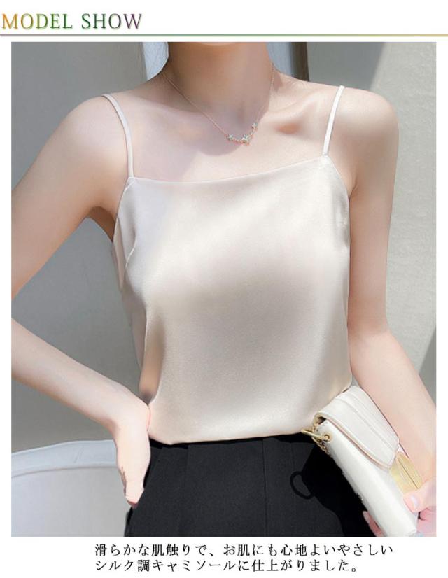 キャミソール キャミソール タンクトップ サテン トップス シルク調 ブラウス インナー シャツ スーツインナー 下着 トップス オフィス ノースリーブ キャミトップ 肌着 吸汗 速乾 レディース 重ね着 上品 部屋着 透けない