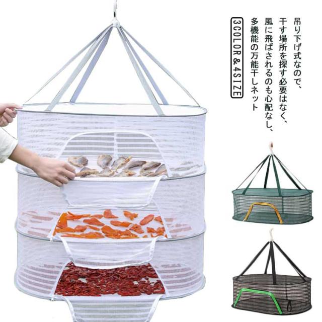 魚干し網 4段 3段 通気性いい ハンギングドライネット 1段 大容量 平干しネット 野菜干しネット 2段 干し網 洗濯物 食品干し 型崩れ防止 コンパクト 折りたたみ セーター干しネット 防風 平干し ズレ防止 物干しネット