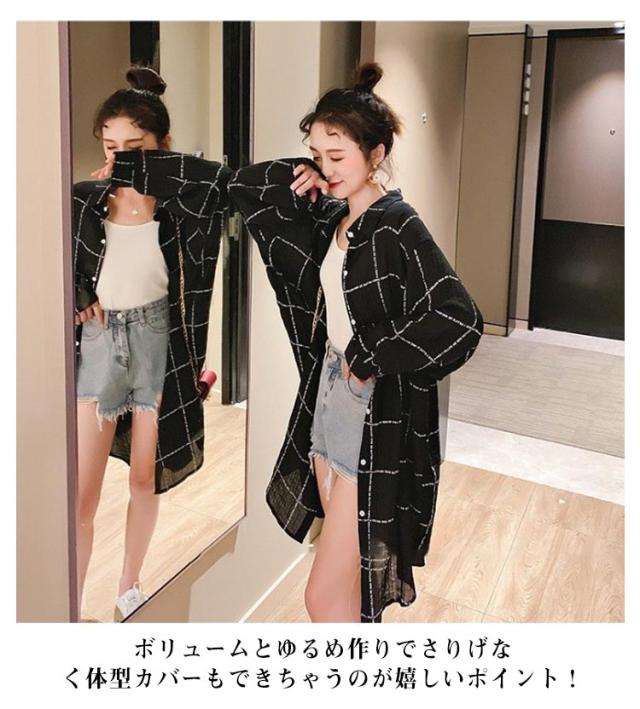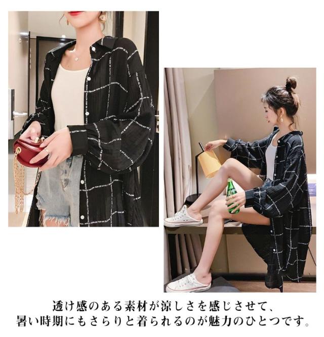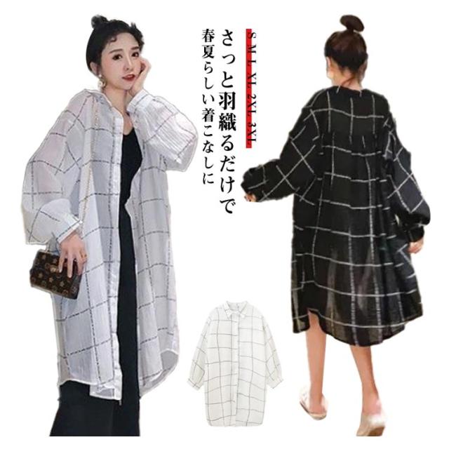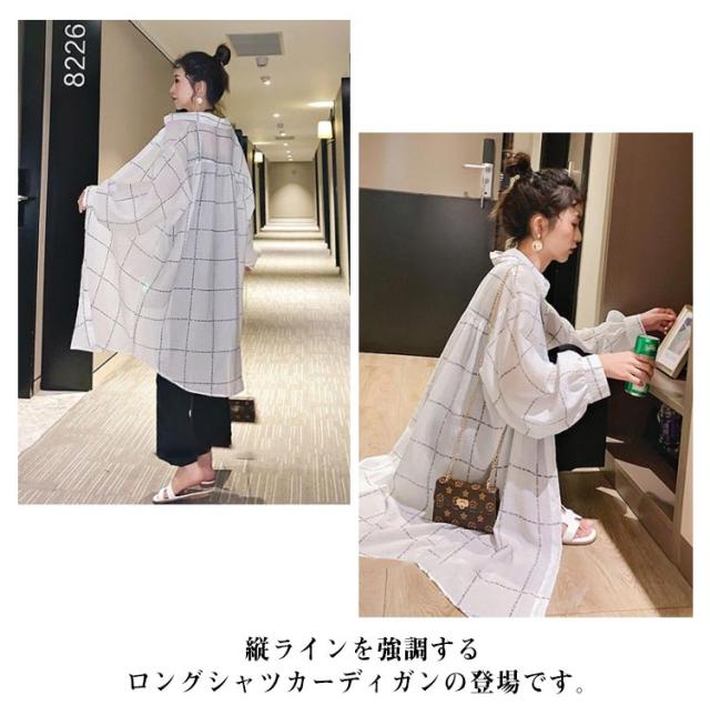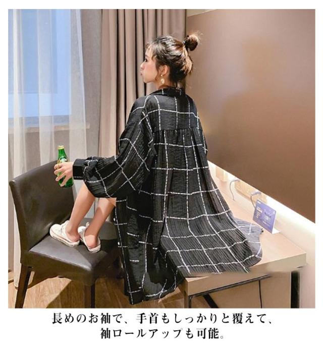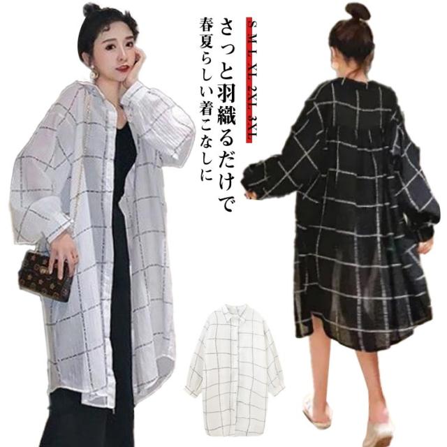 レディース ロングカーディガン 長袖 カーディガン UVカット チェック柄 シャツ 着痩せ シースルー シャツ 薄手 日焼け止め シャツワンピース 透け感 春 夏 リゾート ゆったり ビーチ アウター ライトアウター 前開き 羽織り 紫外線対策
