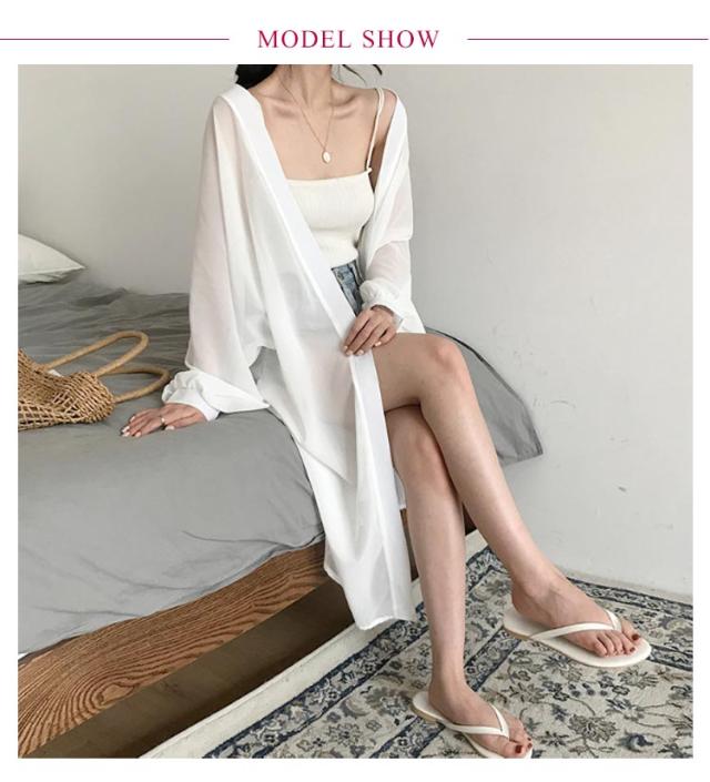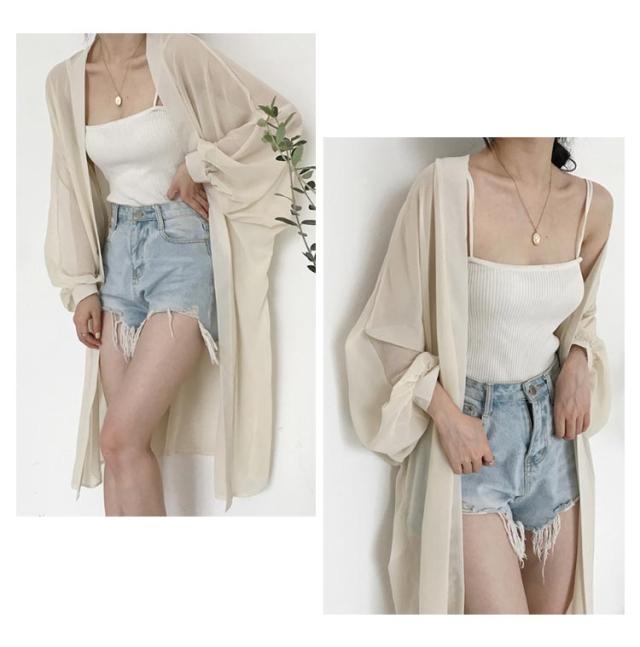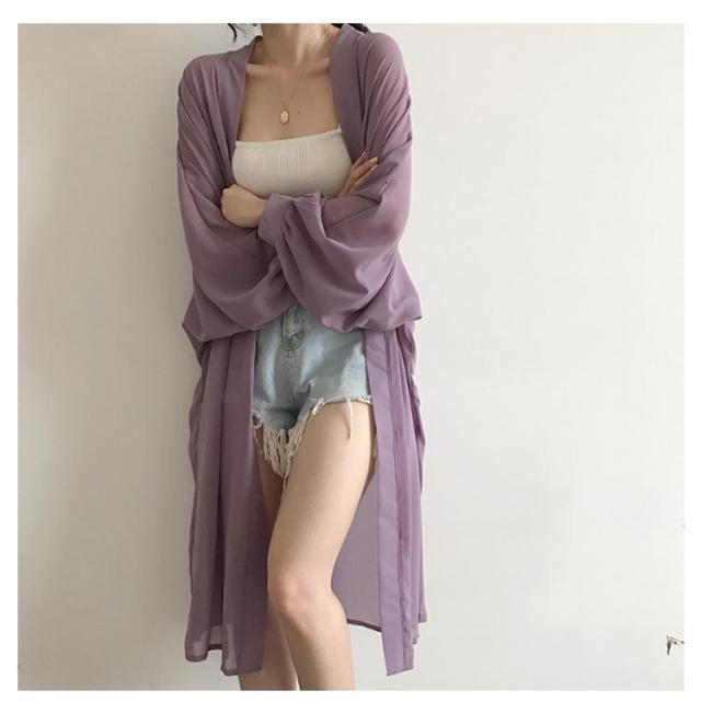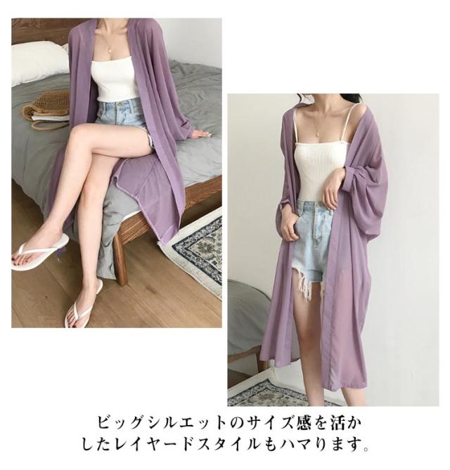羽織り シフォン レデイース ロングカーディガン ロング丈 夏 シフォン ニットカーディガン カーディガン 長袖 シースルー 透け感 薄手 UVカット 軽量 紫外線対策 シンプル 冷房対策 UV対策 サマーカーディガン