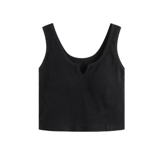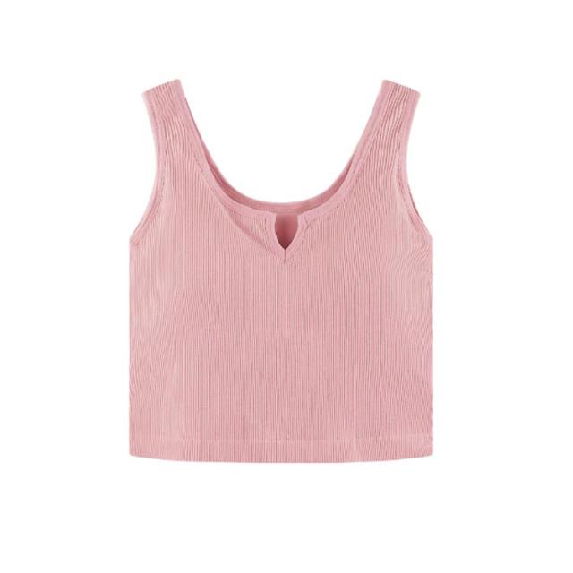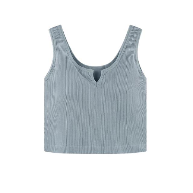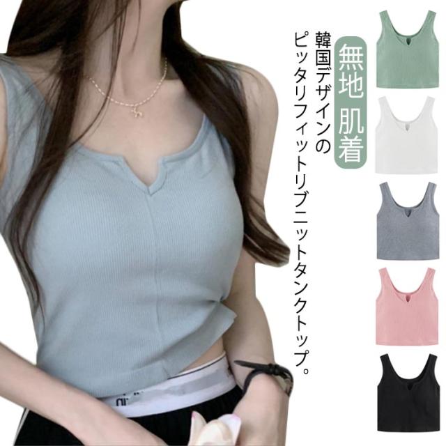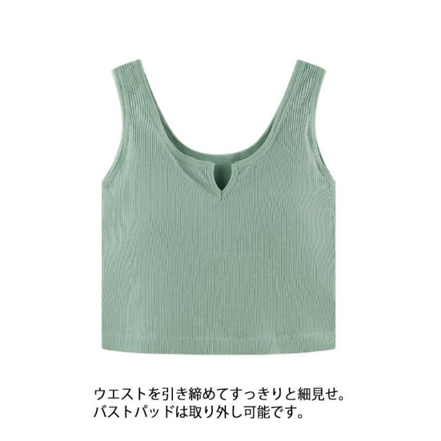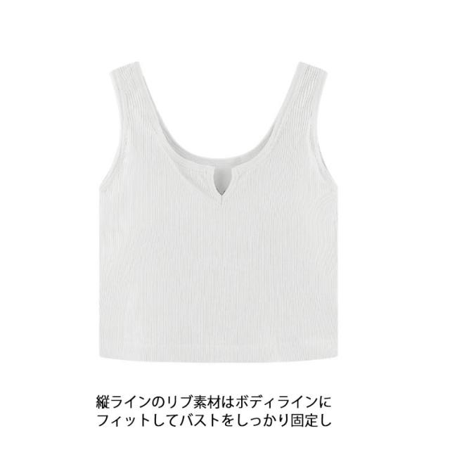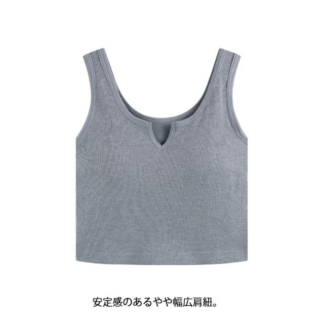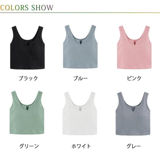 レディース カップ付きキャミソール リブ インナー 肌着 ショート丈 カップ付きキャミソール カップ付きインナーノースリーブ キーネック シンプル カジュアル トップス 無地 締め付けない 見せるタンク フィットネス ヨガ