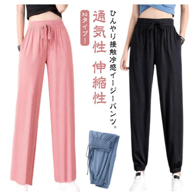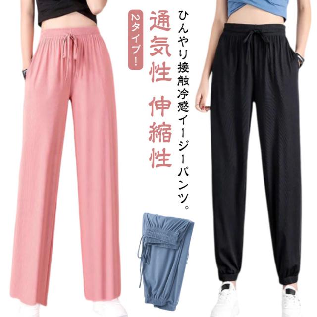 冷感パンツ ワイドパンツ ひんやり ジャージパンツ スウェットパンツ レディース 大きいサイズ ジョガーパンツ 春 接触冷感 ヨガパンツ 薄手 ポケット付き 2タイプ 涼しい 通気性 ゆったり イージーパンツ 秋 伸縮性 ウェストゴム ランニング 夏 涼感