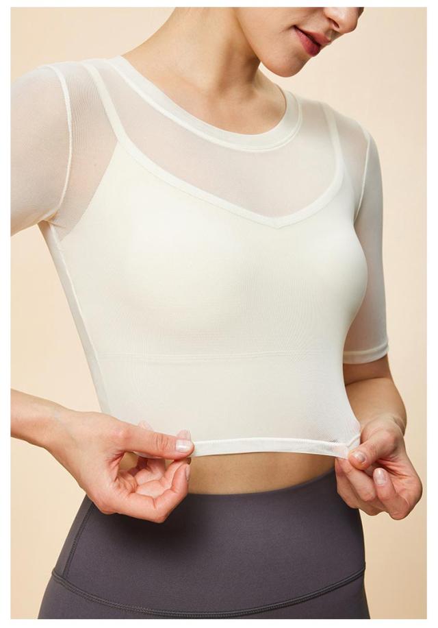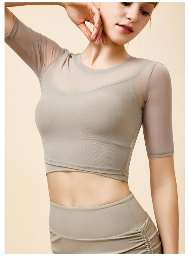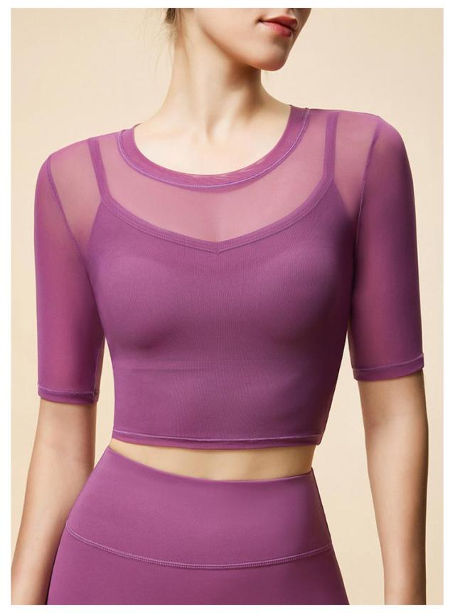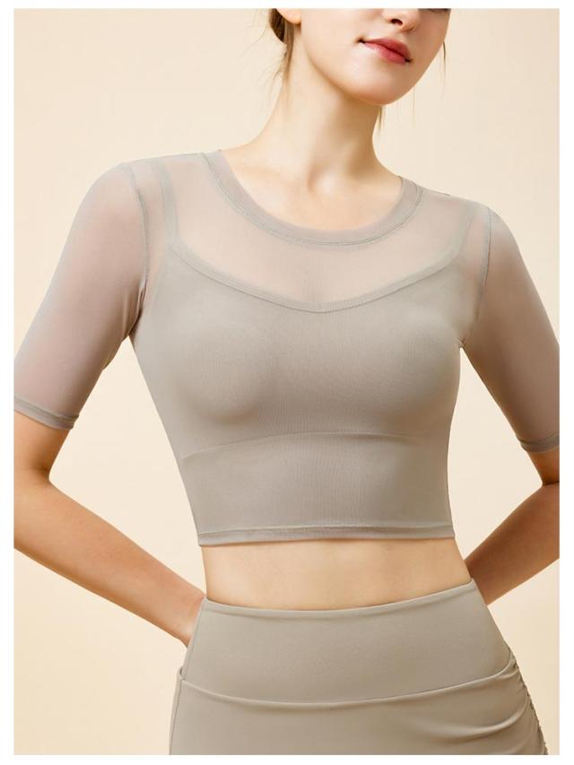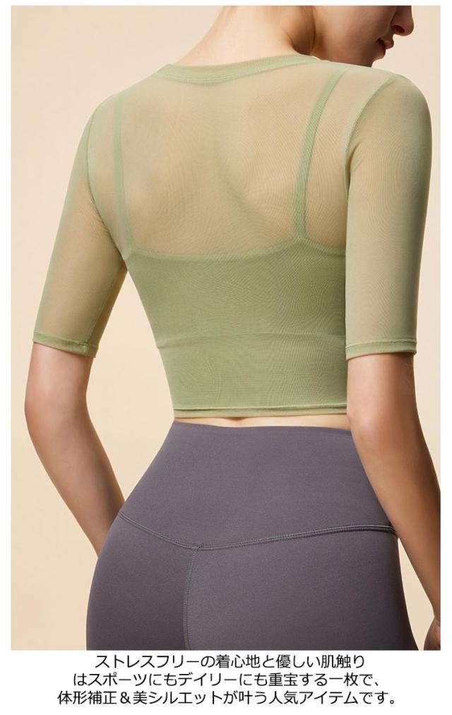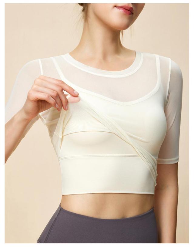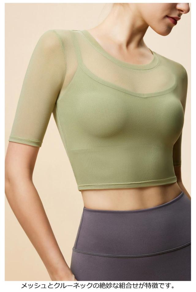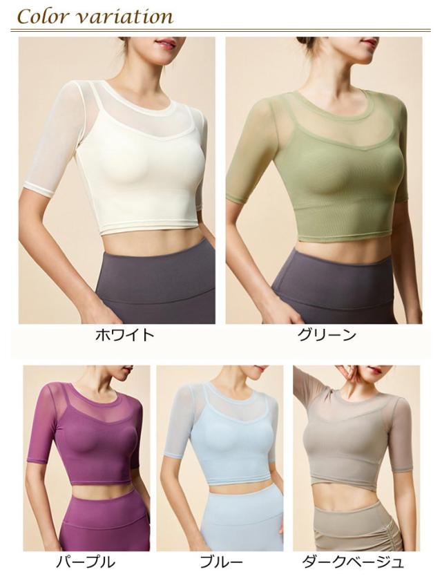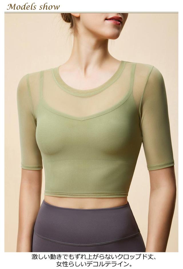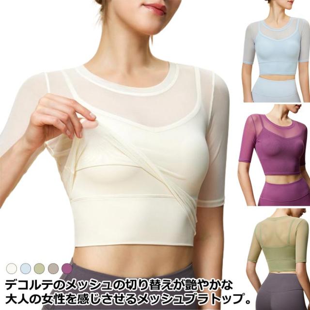 通気性 ヨガ ヨガウェア メッシュ 半袖トップス トップス ストレッチ 薄手 メッシュ スポーツブラ カップ付き ジム ホットヨガ ピラティス 揺れない スポーツ フィットネス ジム ダンス