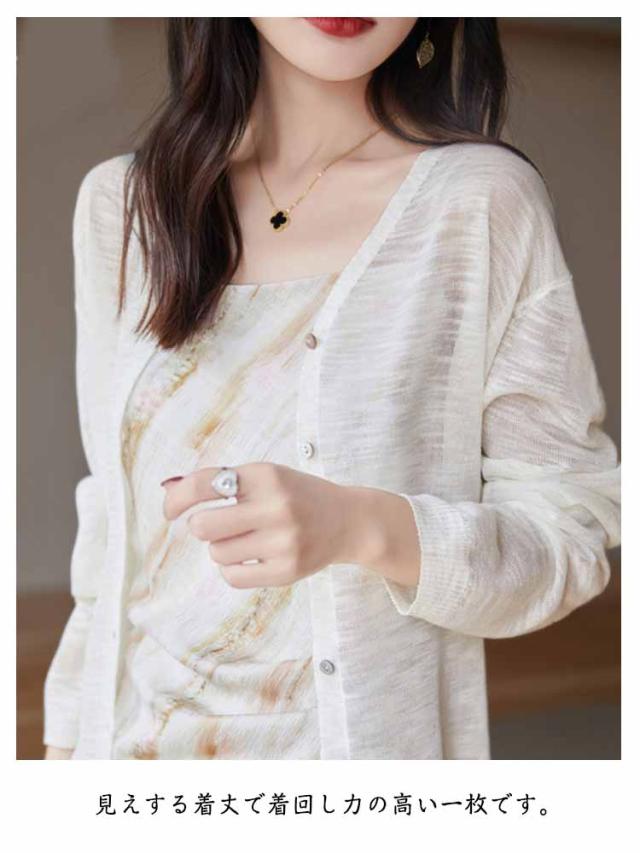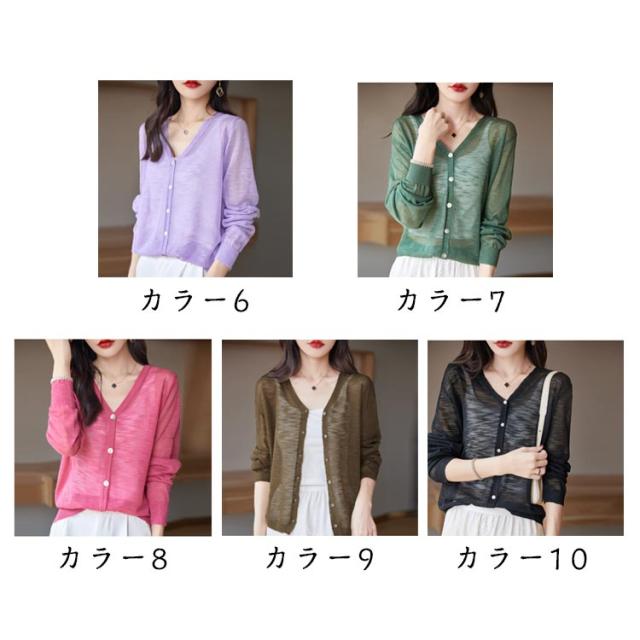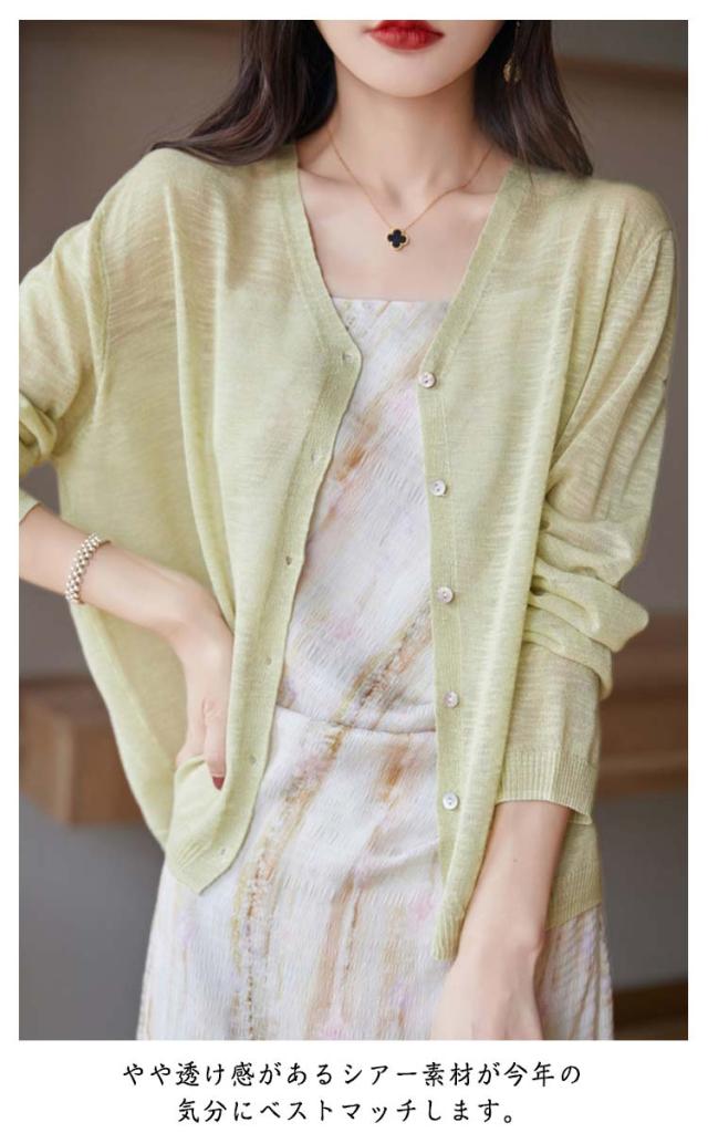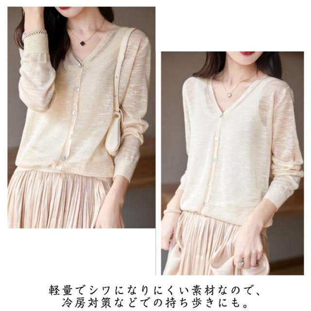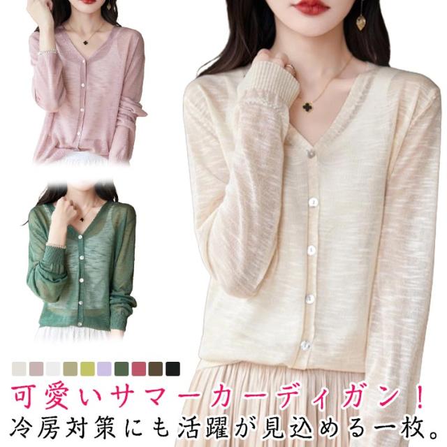 ニットカーディガン サマーカーディガン サマーニット UV対策 薄手 サマーカーディガン 大きいサイズ 羽織り 長袖 Vネック レディース 紫外線対策 UVカット シアートップス 透け感 夏 オフィス 冷房対策 M L XL