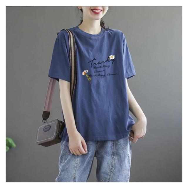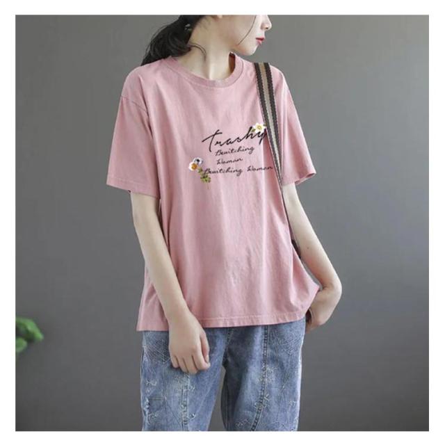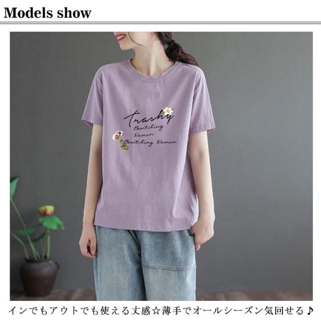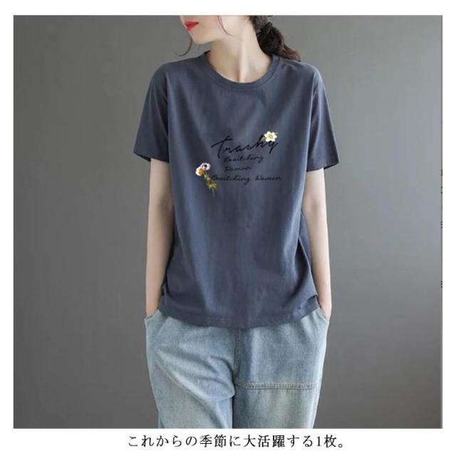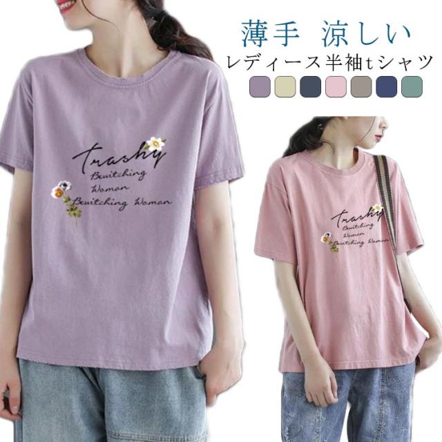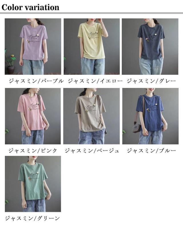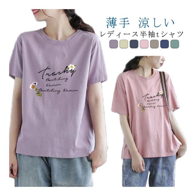 カットソー ワイド Tシャツ レディース 大きいサイズ 薄手 かわいい 春夏 大人 体型カバー プリント 半袖 ジャスミン柄 カジュアル 半袖 快適 着?せ おしゃれ トップス 涼しい シンプル クルーネック 大人女性 プレゼント ゆったり
