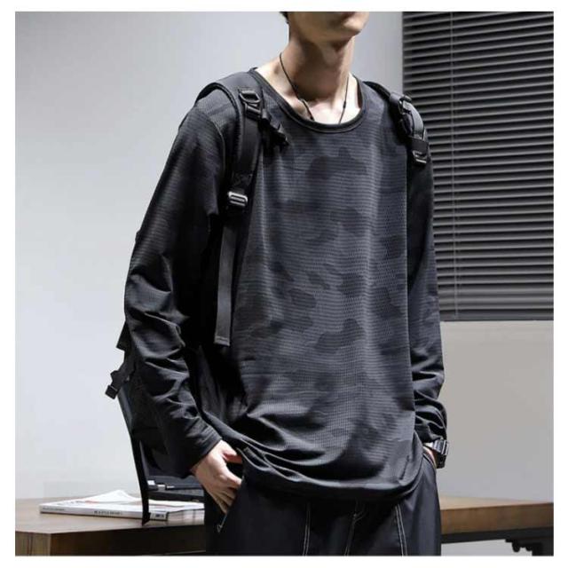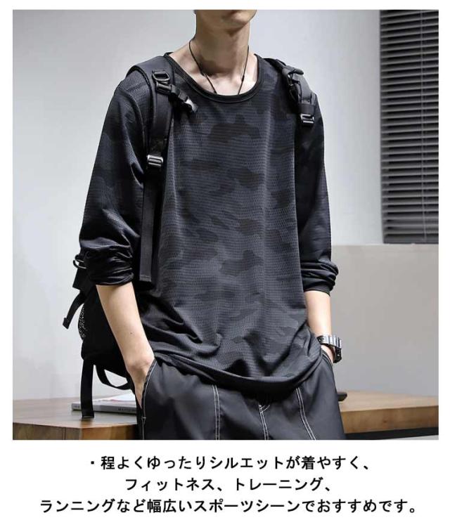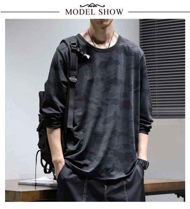 Tシャツ 年間対応 メンズ 迷彩柄 長袖 メッシュ トップス ロングTシャツ ストレッチ 吸汗速乾 大きいサイズ 作業着 かっこいい おしゃれ オールシーズン 涼しい 迷彩 カモフラ キャンプ スポーツ ドライ