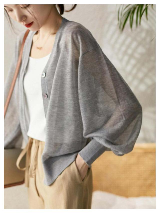 | 紫外線対策や冷房対策にもなるカーディガンは色違いで何枚持っていてもこれからのシーズン重宝すること間違いなしです。 サッと肩から羽織りやすい少し余裕のあるシルエットですが小さく丸めるとコンパクトにもなるので鞄の中に1つ入れておくのも◎ どんなスタイリングにも合わせやすく、多様なシーンで活躍します。 デイリーカジュアルなコーディネートにも、オフィスやデートなどの特別な場面にもぴったり◎ | |