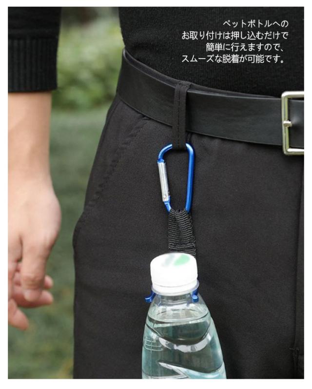 キーホルダー あったら便利 ペットボトルホルダー カラビナ取付け ベルト通し 散歩 登山 アウトドア ボトルフック ドリンクホルダー フェス トレッキング スポーツに ナスカン付き アウトドア用品 カラビナ
