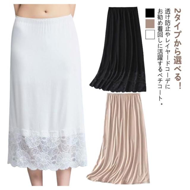 裾レース 抜け感 2タイプ レースペチコート ペチコート インナースカート スカート フォーマル アンダースカート ペチスカート ドレスインナー 透け防止 重ね着 静電気防止 透けない ボトムス 春夏 大人 50代 20代 30代 40代 見せる