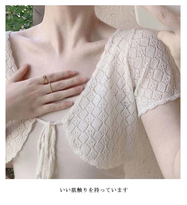 冷房対策 レディース 透かし編み 透け感 半袖カーディガン ボレロ 大人可愛い 薄手 夏用 森ガール サマーカーディガン 春夏 きれいめ 夏 おしゃれ 可愛い サマーカーディガン 20代 30代
