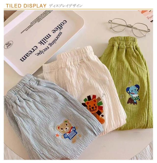 ズボン 蛙 可愛い 刺繍 ベビー 子供服 男の子 長ズボン パンツ ライオン ウエストゴ 子供服 ジュニアパンツ 象 キッズ 熊 ボトムス ベビー服 リネン キッズ 女の子 夏 ベビー ボトムス ゆったり 子供 涼しい 麻 パンツ