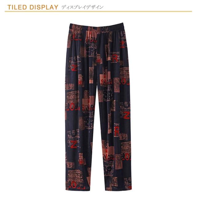 夏 ワイドパンツ 柄 総柄 接触冷感 メンズ タイパンツ パンツ 涼感 冷感 ワイド タイパンツ シルク アイス 通気性 ロング 部屋着 ルームウェア 薄手 落ち感 ゾウ レディース 体型カバー ハイウエスト ゴムウエスト ストレッチ タイパンツ