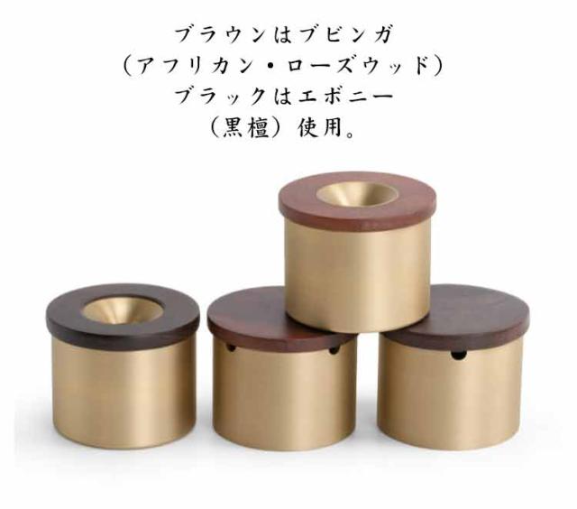 | 木製フタ付き灰皿 エレガンスを纏った灰皿モダンな存在感、ゆるみのない美しさ。 滑らかなフォルム、真鍮が美しい光を放ち、天然木が優しさを添えます。 ブラウンはブビンガ(アフリカン・ローズウッド)ブラックはエボニー(黒檀)使用。 | |