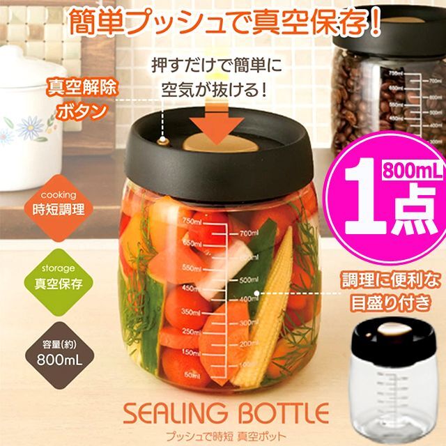 押すだけ鮮度長持ち真空保存!真空ポット800mL[1点] (コーヒー豆 トマト らっきょ 漬け物 レモネード)