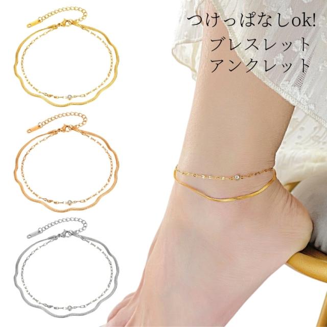 サージカルステンレス製のアンクレット/ブレスレットは、シンプルながらも洗練されたデザインが魅力です。
