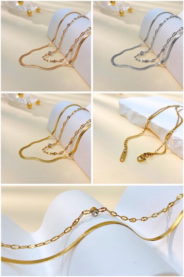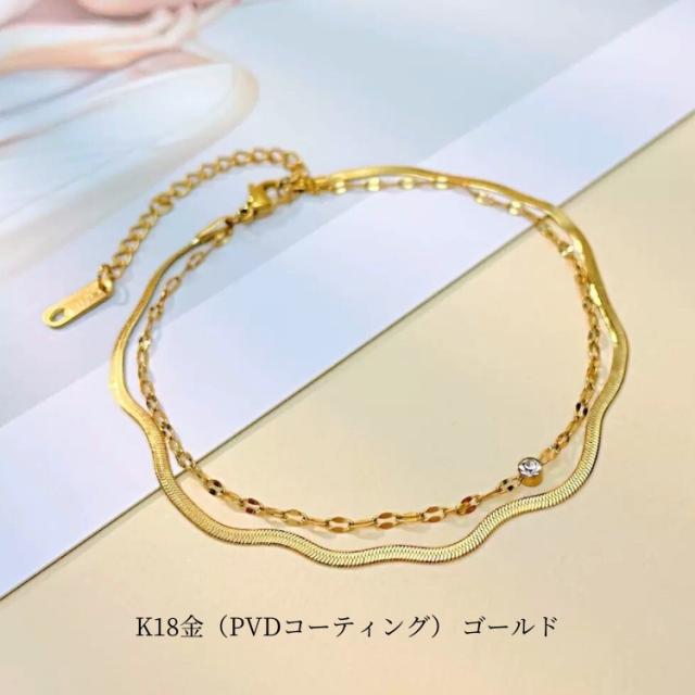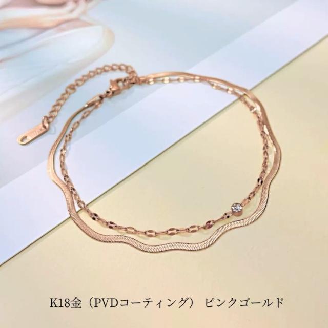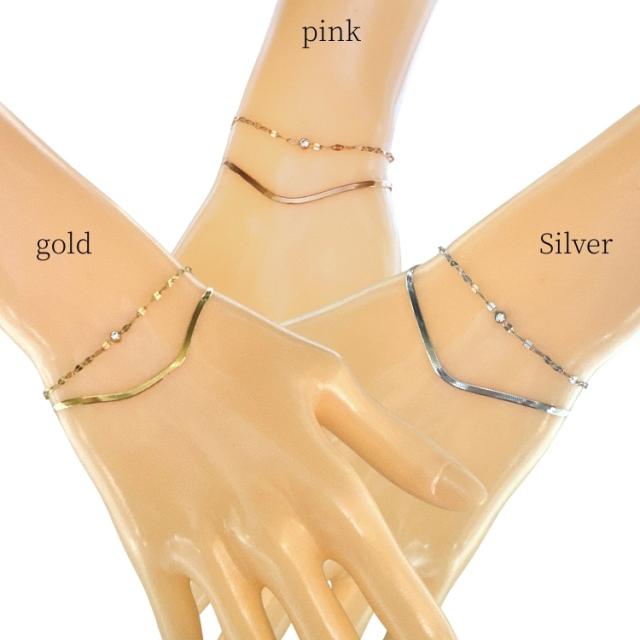 アンクレット つけっぱなし サージカルステンレス ブレスレット レディース シンプル 金属アレルギー対応 2連チェーン 18金仕上げ 1粒3mm czダイヤ (ジルコニア) k18 金メッキ ピンクゴールド ゴールド シルバー 2連 ブレスレット アンクレット かわいい カジュアル 大人