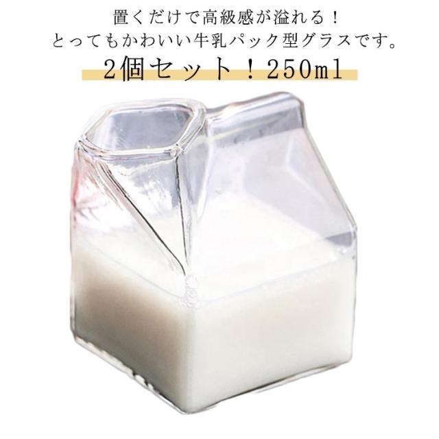 2個セット 牛乳パック型 耐熱ガラス ミルクピッチャー ミルクコップ コーヒーコップ 牛乳 コップ 北欧風 グラス 耐熱ガラス コップ 透明 ホット アイス 美容室 雑貨 自宅 パーティー 結婚祝い 引越し祝い プレゼント ミルクパック