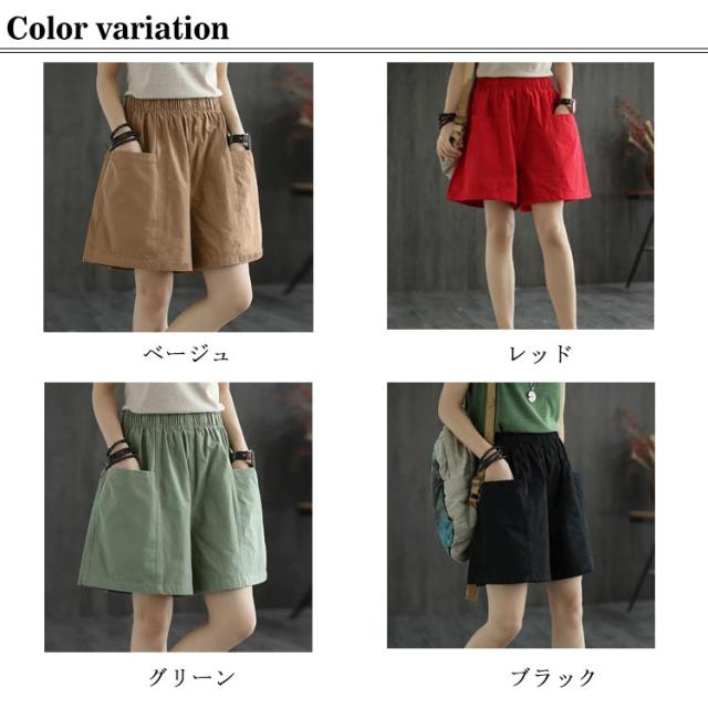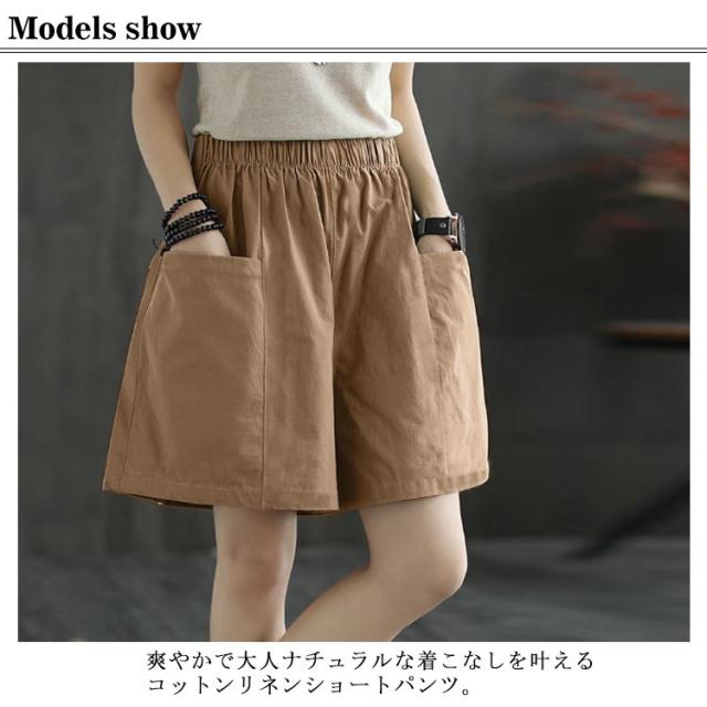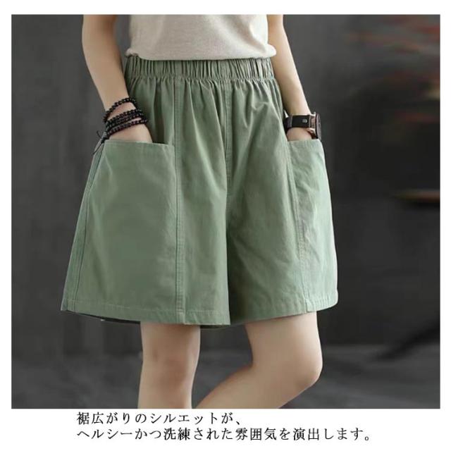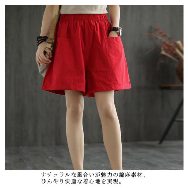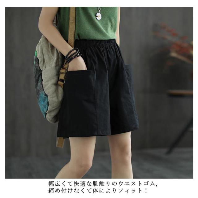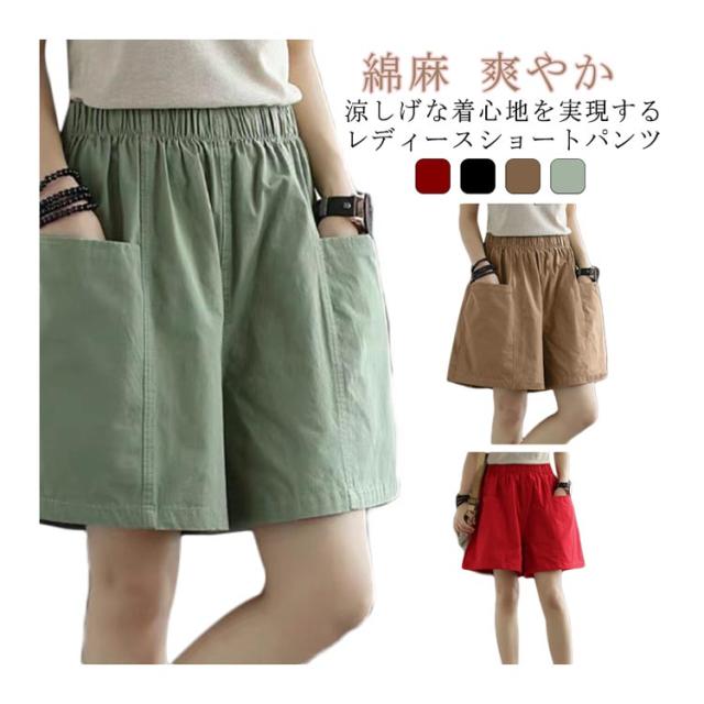 綿麻 レディース ボトムス 快適 ショートパンツ ナチュラル ショートパンツ Aライン 体型カバー 涼しい ハーフパンツ ゆったり ウエストゴム ショート丈 爽やか ルームウエア 部屋着 短パン 無地 シンプル 着?せ 体型カバー 大きいサイズ