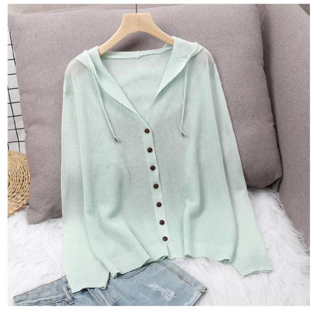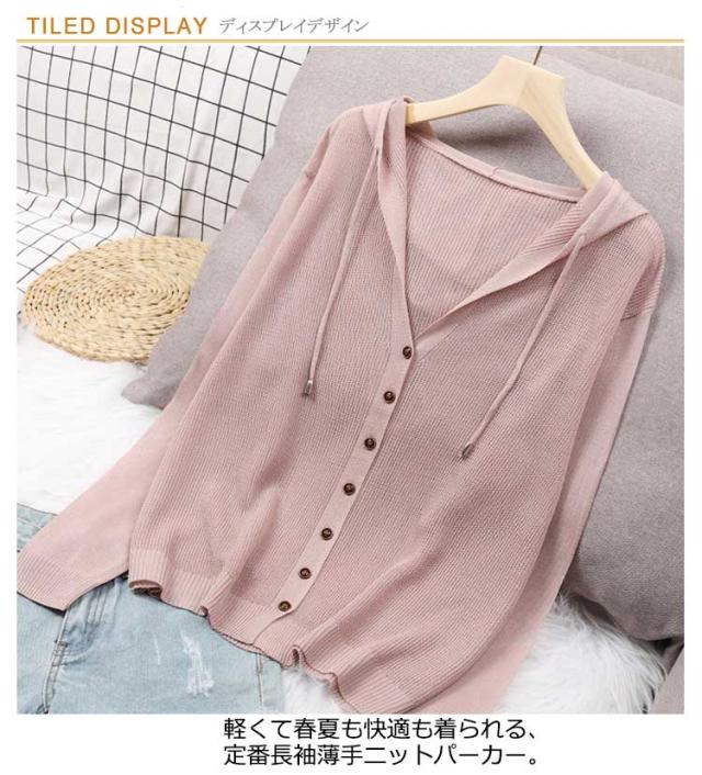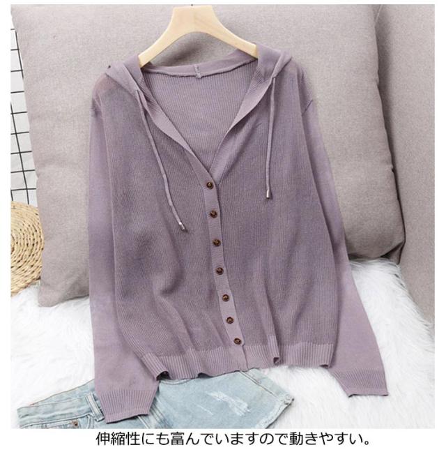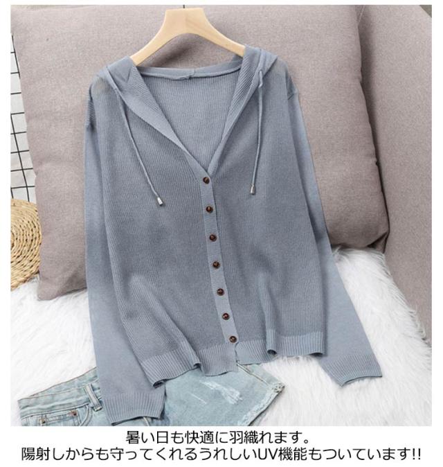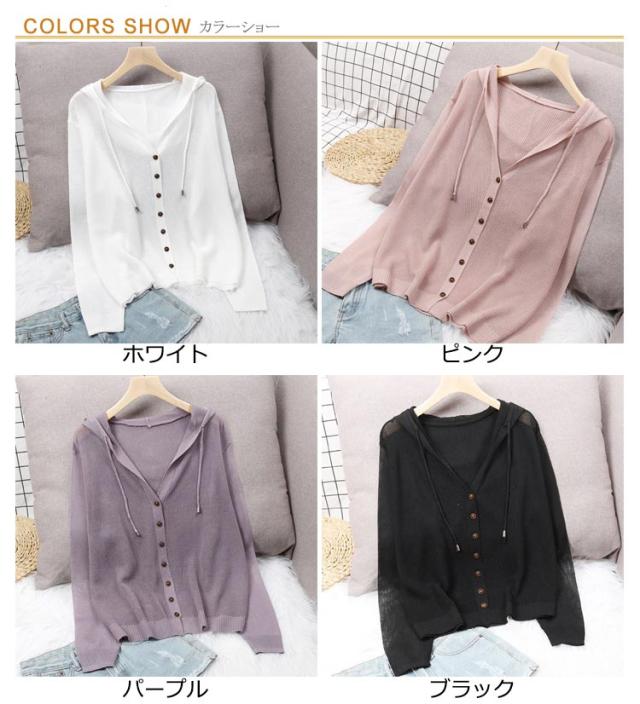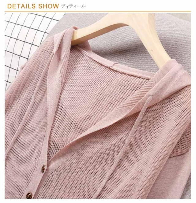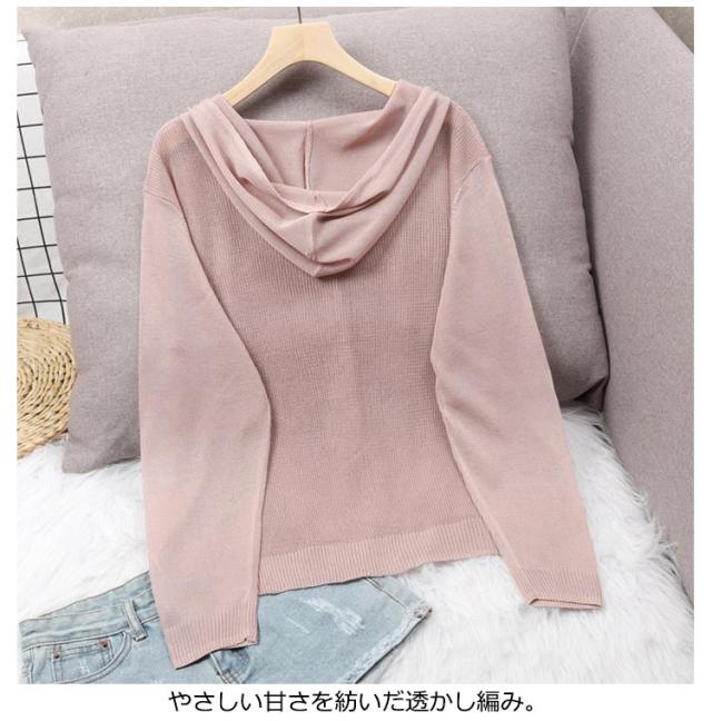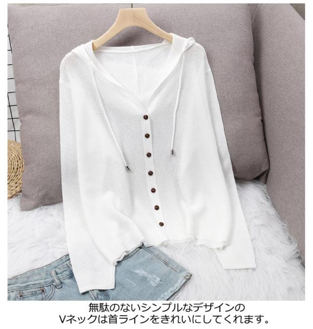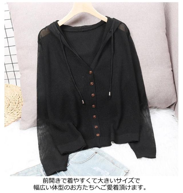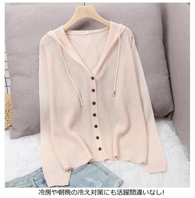 カディガン 無地 透け感 夏用 薄手 羽織り ニットカーディガン サマーカーディガン ニットパーカー ニットカーディガン フード付きカーディガン カーデ Vネック カーデ サマー シンプル 冷房対策 大人 かわいい