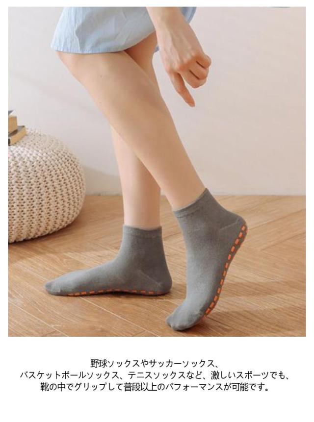 | ヨガやトレーニングなど、室内スポーツに最適◎ シリコン製滑り止め付きのヨガソックスです。 ソール一面のスーパーグリップ素材の滑り止めが付いた、とにかく滑らない!裸足に近いグリップ感が得られます。 各種スポーツやデイリーに使えるアンクル丈。薄めの素材で速乾性もあります。 普段使いはもちろん、スポーツやダンス、ヨガなどにも良いですね。 野球ソックスやサッカーソックス、バスケットボールソックス、テニスソックスなど、激しいスポーツでも、靴の中でグリップして普段以上のパフォーマンスが可能です。 ヨガソックスとしても、裸足よりも滑らないのでオススメです。 | |