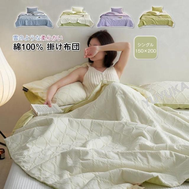 夏布団 肌掛け布団 綿100% 掛ふとん シングル 150×200cm 水洗い綿 洗いざらし 掛け布団 洗える 夏用 肌布団 薄い掛けふとん カバー不要 薄手 軽い 柔らかな肌触り 冷房対策 春夏秋用