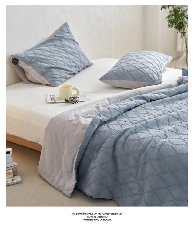 【洗いざらし、ソフトな肌触り】 洗いざらし加工を施した綿の自然で、柔らかな肌触り。 独特の味、風合いは、毎日の眠りを楽しみなものに変える。
