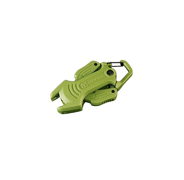 バッグやループなど好きな場所に取り付けられる携帯性、必要な時に素早くラインが切れる取り回しの良さ、不意に手を添えてしまっても刃に触れにくい安全性、思わず持ち運びたくなるようなギアとしてのデザイン性など、陸っぱりにおいて、機能性と実用性を兼ね備えたラインカッターです。ボディの両サイドのトリガーを握りこむと、刃が現れる画期的な構造。トリガーの形状は握り込みやすい形状を目指しトライを繰り返しました。不使用時は、刃が露出しにくく安全です。また刃の部分はセレーション形状(ギザ刃仕様)を採用することで、刃の上でラインが滑りにくくナイロンやフロロカーボンラインはもちろん、PEラインにも対応します。本体上部はカラビナ構造を採用することで、バッグなどにワンタッチで取り付けが可能です。思わぬ刃の飛び出しを防ぐケース付き。