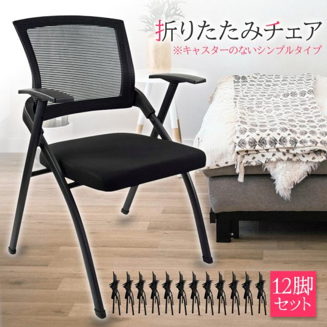 折りたたみ椅子 完成品 折りたたみチェア 12脚セット 背付き 組み立て不要 軽量 コンパクト 収納 会議 収納 パイプ椅子 パイプイス ミーティングチェア 椅子 チェア