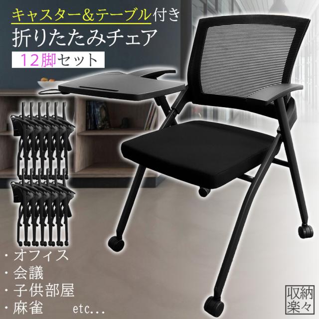 折りたたみ椅子 テーブル キャスター付き 完成品 12脚セット 折りたたみチェア 背付き 組み立て不要 軽量 コンパクト 収納 会議 収納 パイプ椅子 パイプイス ミーティングチェア 椅子 チェア 学校 集会所 ミーティング