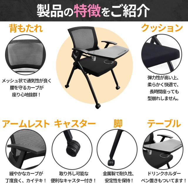 【便利なテーブル】テーブルは、ドリンクホルダー、ペン置き付き。会議や公演、ミーティングなどで役立ちます。ネジで簡単に取り付けできます。付属の小さなL字六角を使って、テーブルの左右の角度もある程度調節できます。