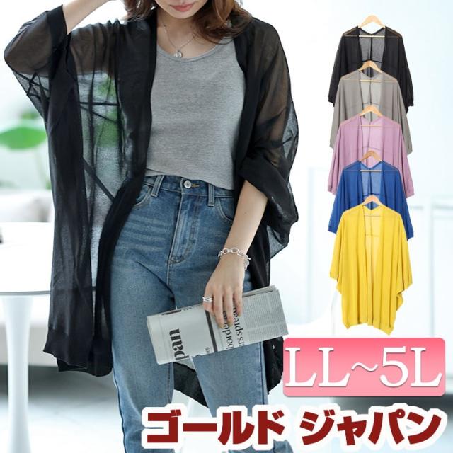 春新作 大きいサイズ レディース トップス カーディガン ボレロ シアーニットドルマンカーディガン カーデ シアーカーデ ドルマンカーデ 長袖 シアー ドルマン ロング ストレッチ 春服 夏 LL 2L 3L 4L 5L ラベンダー イエロー グレー ブルー ブラック 黒 ゴールドジャパン