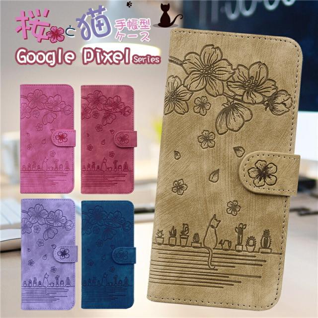 Google Pixel 10 8a 9A 7 Pro ケース 手帳型 GooglePixel8a 手帳型ケース ピクセル9A Pixel7a Pixel 6a 9Pro 手帳型 カバー グーグル ピクセル10 ピクセル8a 携帯ケース カバー かわいい おしゃれ 大人 女子 桜 サクラ ネコ 花柄 ネコ ねこ 猫柄 型押し 手帳型スマホケース