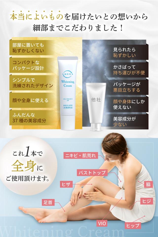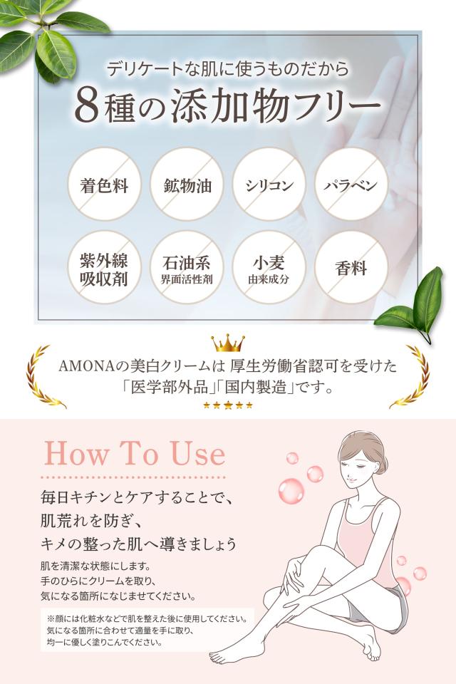 AMONA 薬用美白クリーム 医師監修 デリケートゾーンクリーム 黒ずみ除去クリーム 顔 全身用 VIO 脇 バストトップ そばかす シミ消し ボディケア 保湿 医薬部外品