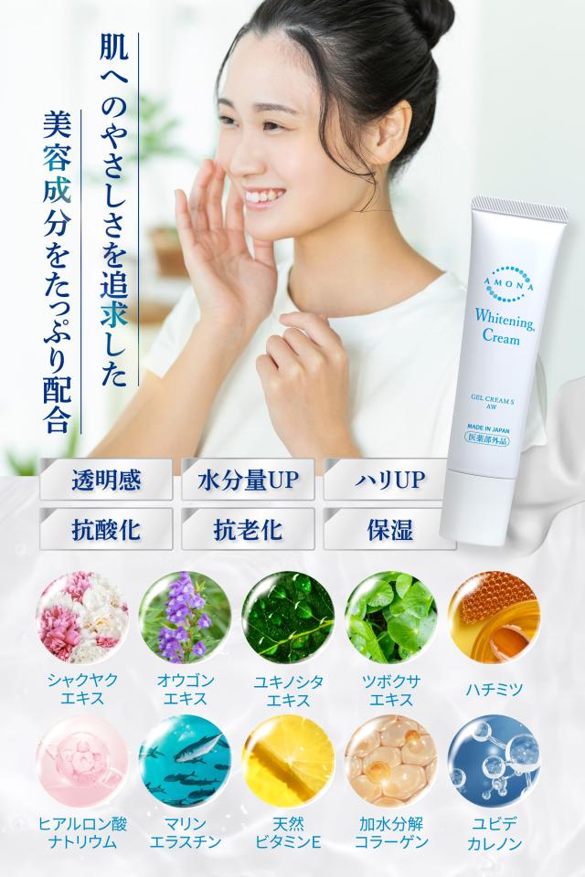 透明感のある肌へ導くAMONA美白クリームで、自信のある輝く笑顔を手に入れましょう。