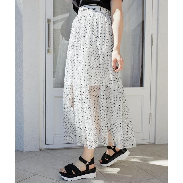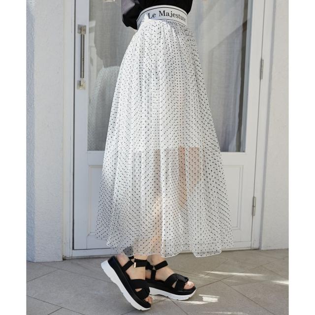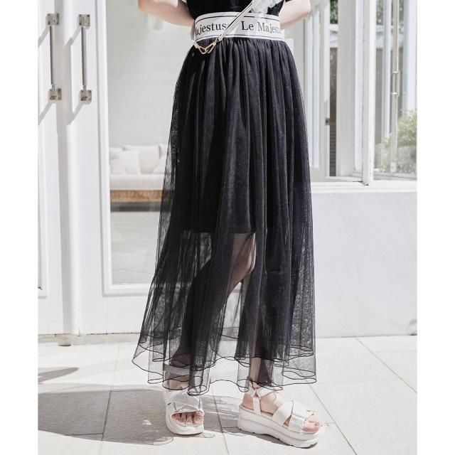 ウエストをオリジナルプリントのゴムで仕上げたチュールスカート。