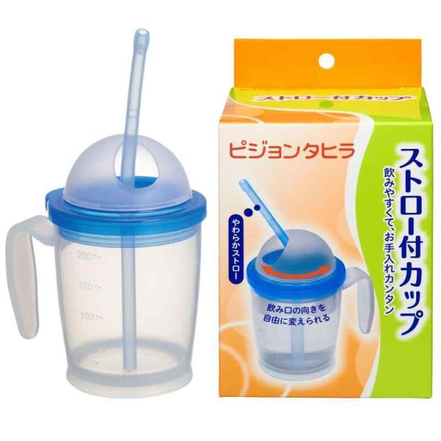 ハビナース ストロー付カップ ストローマグ フタつき こぼれない 介護用 コップ 入院 手術 片麻痺 骨折 高齢者 200ml